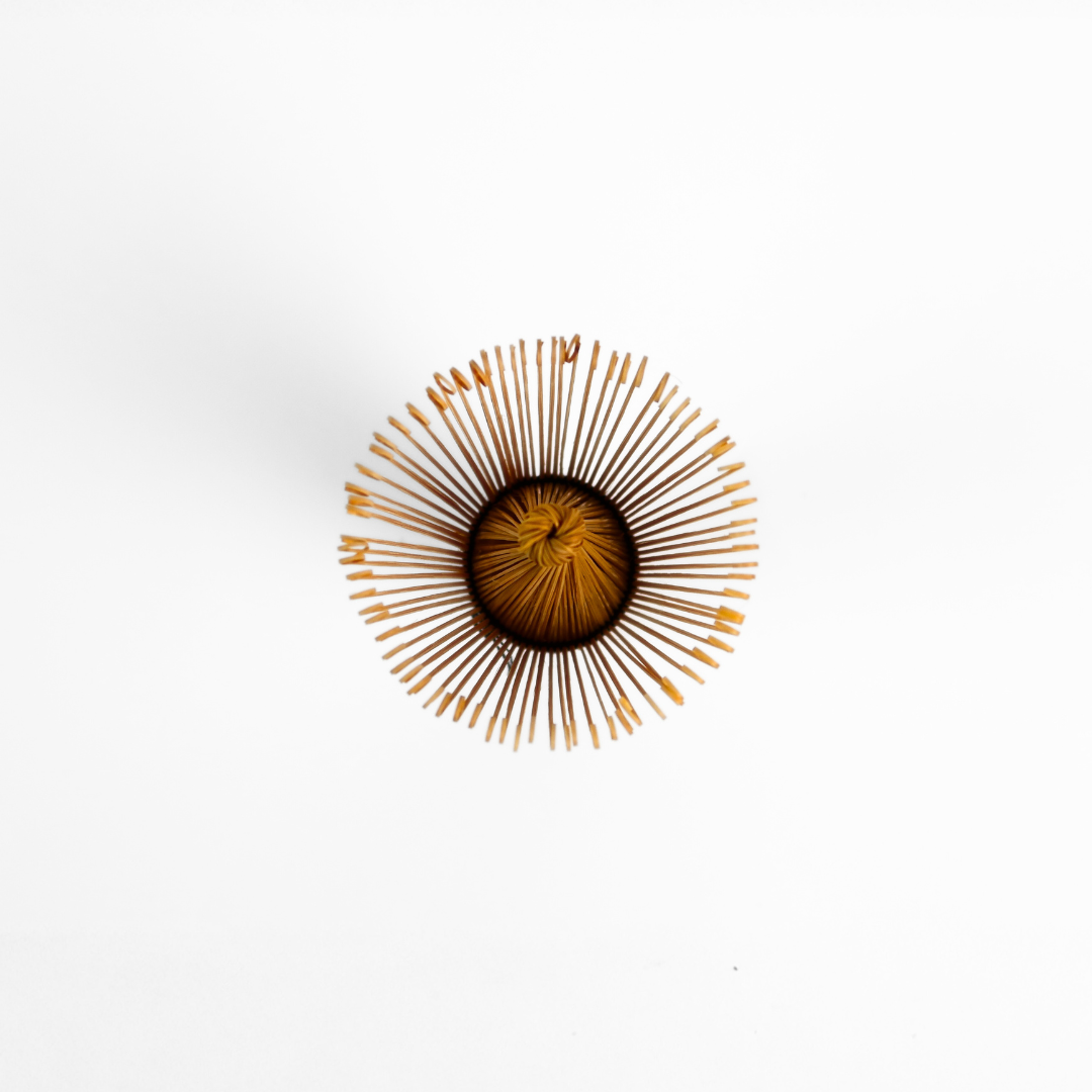 Після кожного використання ретельно промий часен у проточній воді без мила, обережно обертаючи його у воді, щоб змити залишки матча. Не залишай вінчик у воді надовго — це може пошкодити бамбук. Після очищення легенько струси воду і постав часен на підставку або залиш у вертикальному положенні, щоб він повністю висох. Не суши його поблизу джерел тепла чи під прямими сонячними променями.
