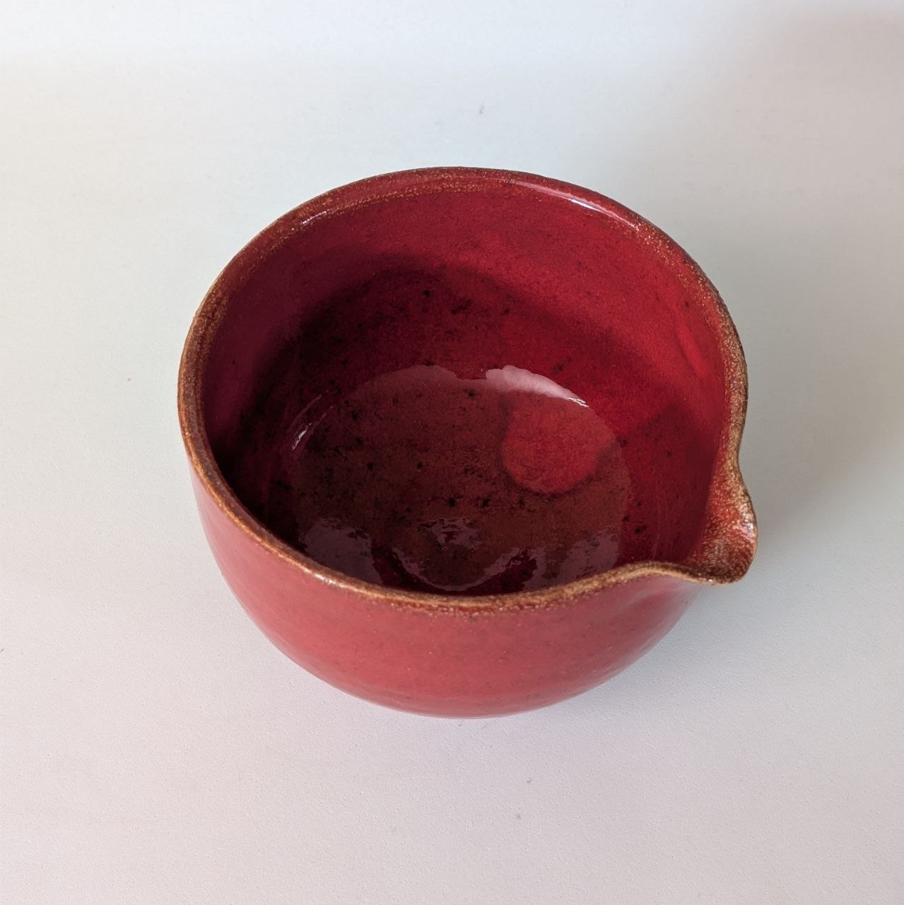 Глибокий червоний колір нагадує сонце на заході — теплий, насичений, живий. Глазур має м’який блиск і природну неоднорідність, завдяки чому поверхня не виглядає плоскою, а “грає” світлом і відтінками при кожному русі.