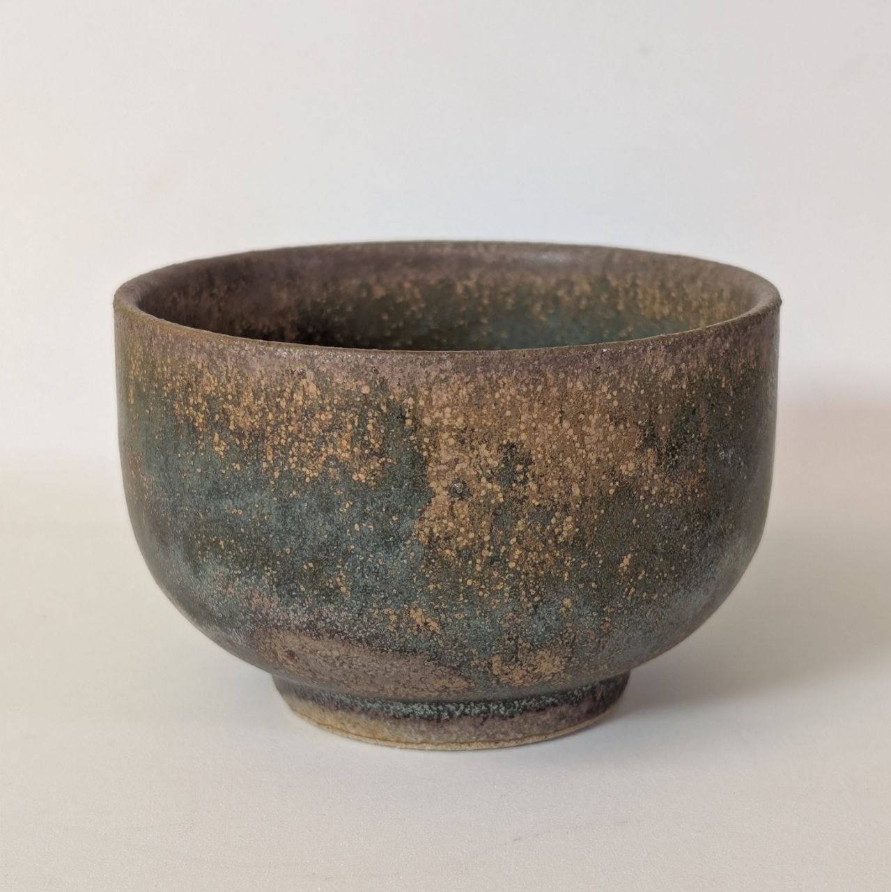 Його поверхня — складна гра відтінків: приглушені зелені, землисті коричневі та попелясті тони, що плавно переходять один в одного. Верх має теплий, майже обпалений край, який контрастує з прохолодним тілом чаші. Цей ефект створює відчуття глибини і “живості” — ніби чаван змінюється разом зі світлом і настроєм простору.