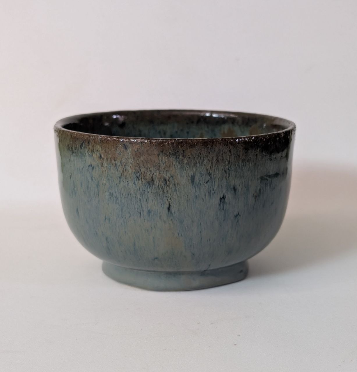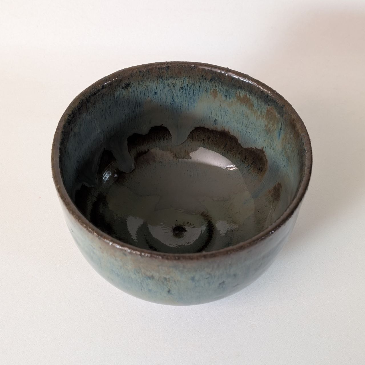 Глазур має складний, живий перехід від глибоких темно-коричневих відтінків по краю до приглушеного блакитно-зеленого тіла. Вона нагадує туман, що сходить з гір після дощу. При різному світлі чаван виглядає по-новому — відкриваючи деталі, які неможливо повністю передати на фото.